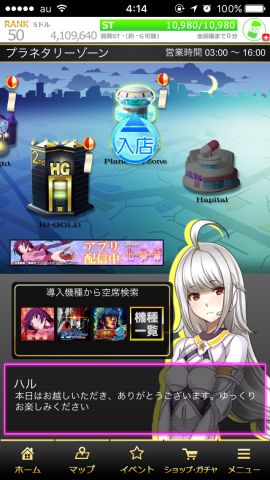 ホールには営業時間があったり、他のプレイヤーもプレイしていたりするので本物のホールのように遊ぶことができます。