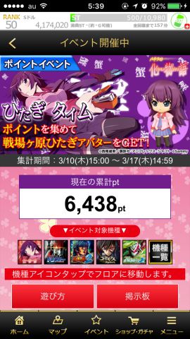 イベントがほとんど常時行われており、イベント機種は条件達成でイベント対象機種のアイテムやST缶をもらうことが出来るのでなるべくイベント対象機種を狙いましょう。