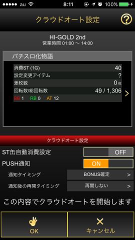 インテリジェンスオートやクラウドオートのない状態だとなかなか長い時間打ち続けることができず、差枚数を稼ぐことが難しいです。