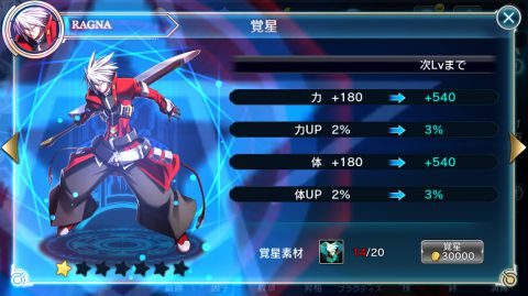 覚醒を行うとキャラクターのステータスが上昇し、星の数が増えます。