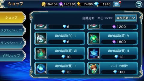 ショップのラインナップは1日1回自動で更新されますが、手動で更新することもできます。