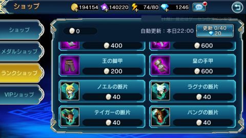 金貨やダイヤで購入できる通常の「ショップ」やランクマッチでもらえるアイテムで購入できる「ランクショップ」で販売されていることを確認しています。