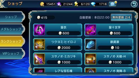 欲しいアイテムが並んでいない場合は画面右上の更新ボタンでラインナップを更新することができます。