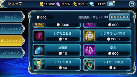 ▲ランクショップには装備やキャラクターの断片が多く並びます。