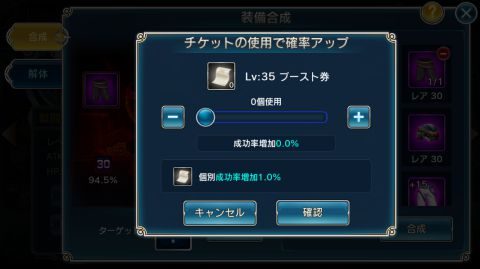 例えば、レア度30、35、40の合成であれば最低のレア度30を基準に30、35、40の装備が出現する可能性があります。
