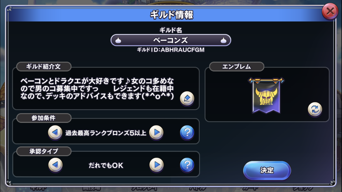 ドラクエライバルズはギルドに入ることでメンバーとのギルド内対戦や観戦ができたり、デッキのレンタルができるようになります。