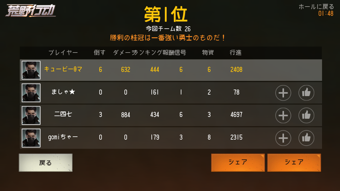 同じくドン勝未経験初心者です。まだ始めたばかりで弱いですが、お願いします。