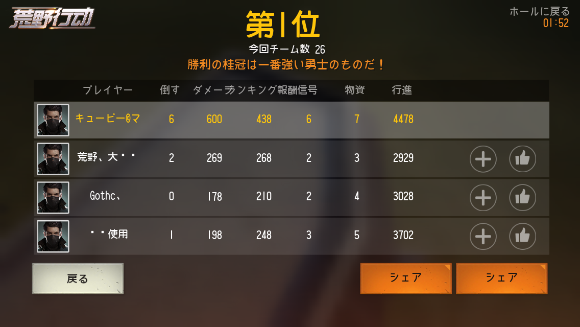 野良とやるとコミュ取れないから一緒に移動できない…でもなんとか1位!