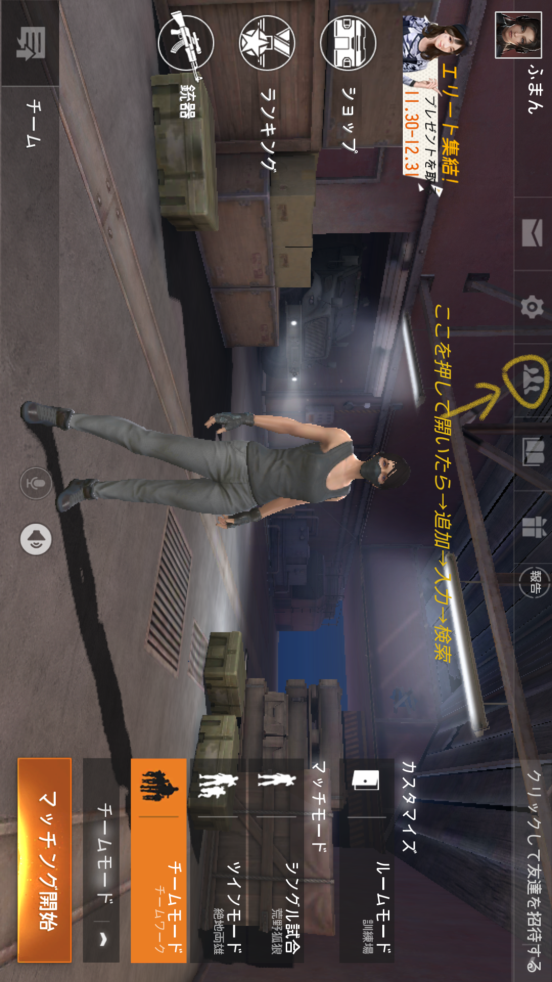 荒野行動のフレンドは申請と承認が必要です。
