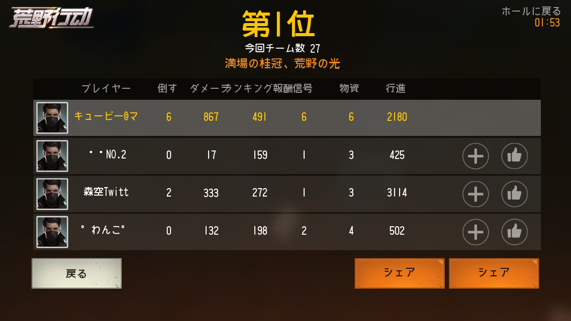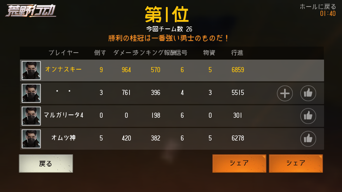マルチで219ラウンド 27ドン勝 359キル K/D1.87 で、シングル、ダブルでは、K/D2.0以上なんで、よければフレンドお願いします。VC大丈夫です。ゲームネームは大国主です。よろしくお願いします。