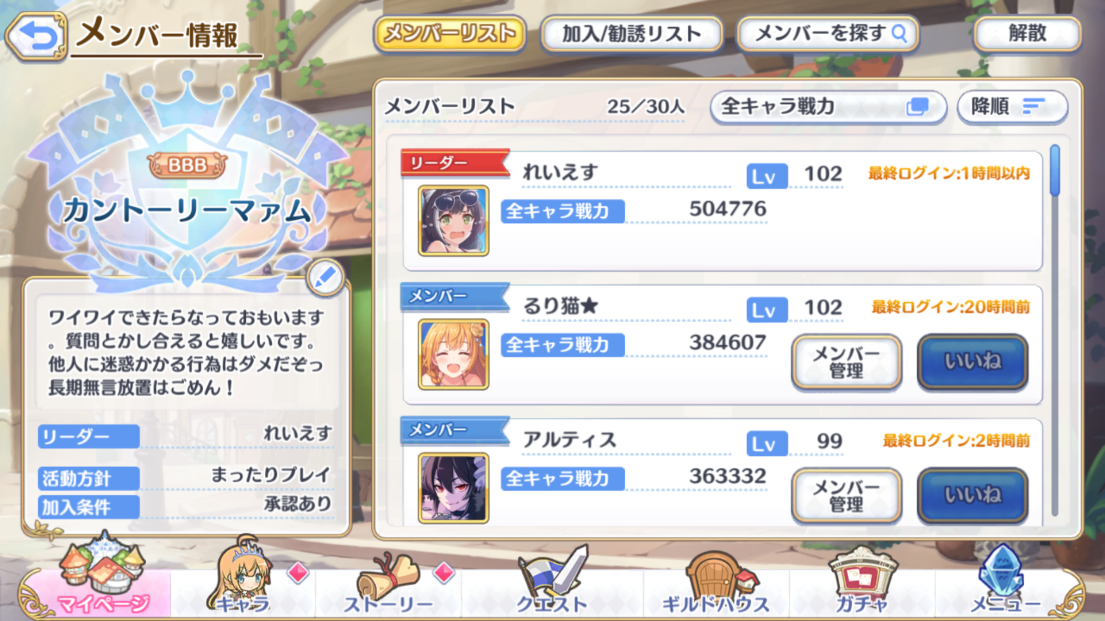 まったりとしていて楽しいクランなんで是非一緒に楽しみましょう!レッツプリコネ!!なの~^^ノシ