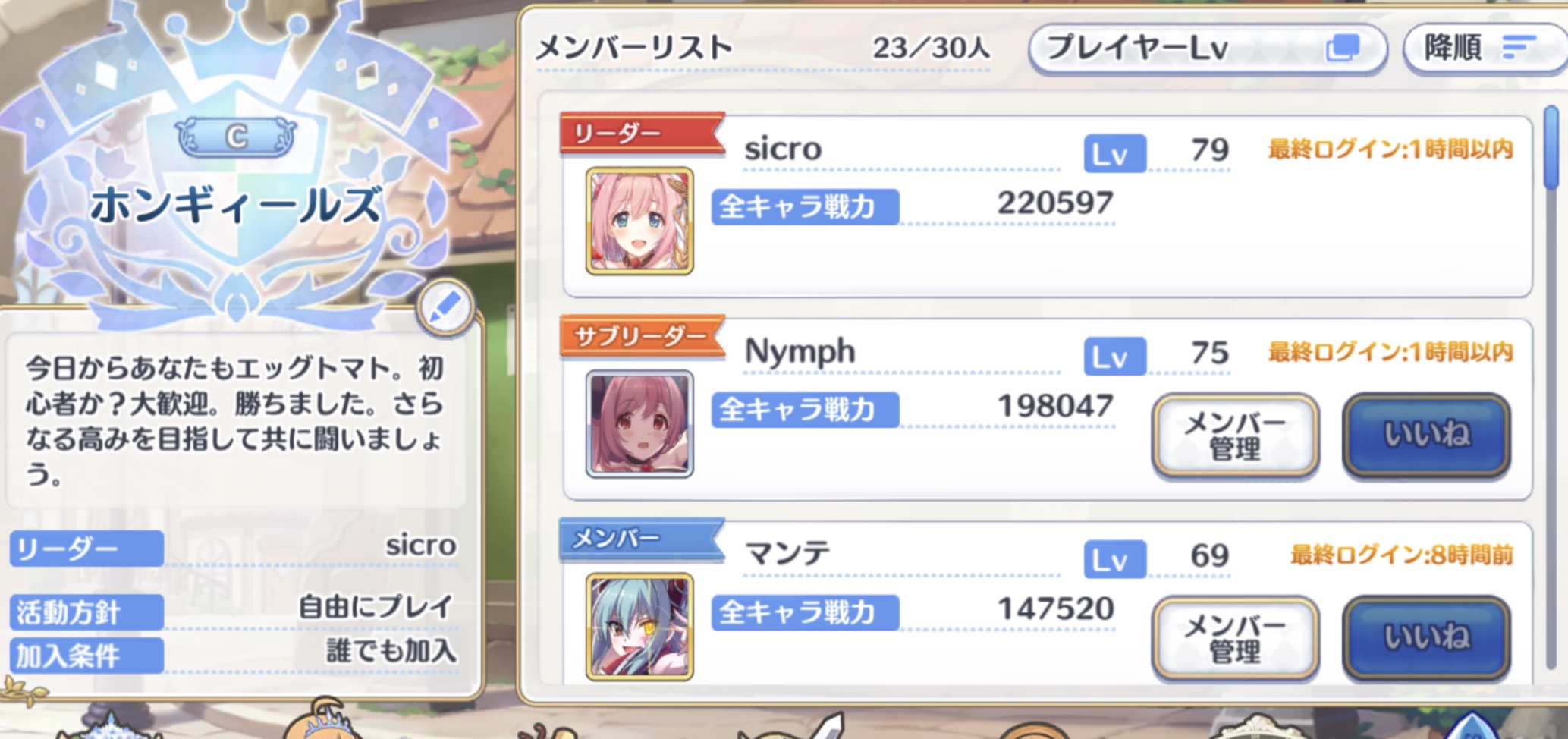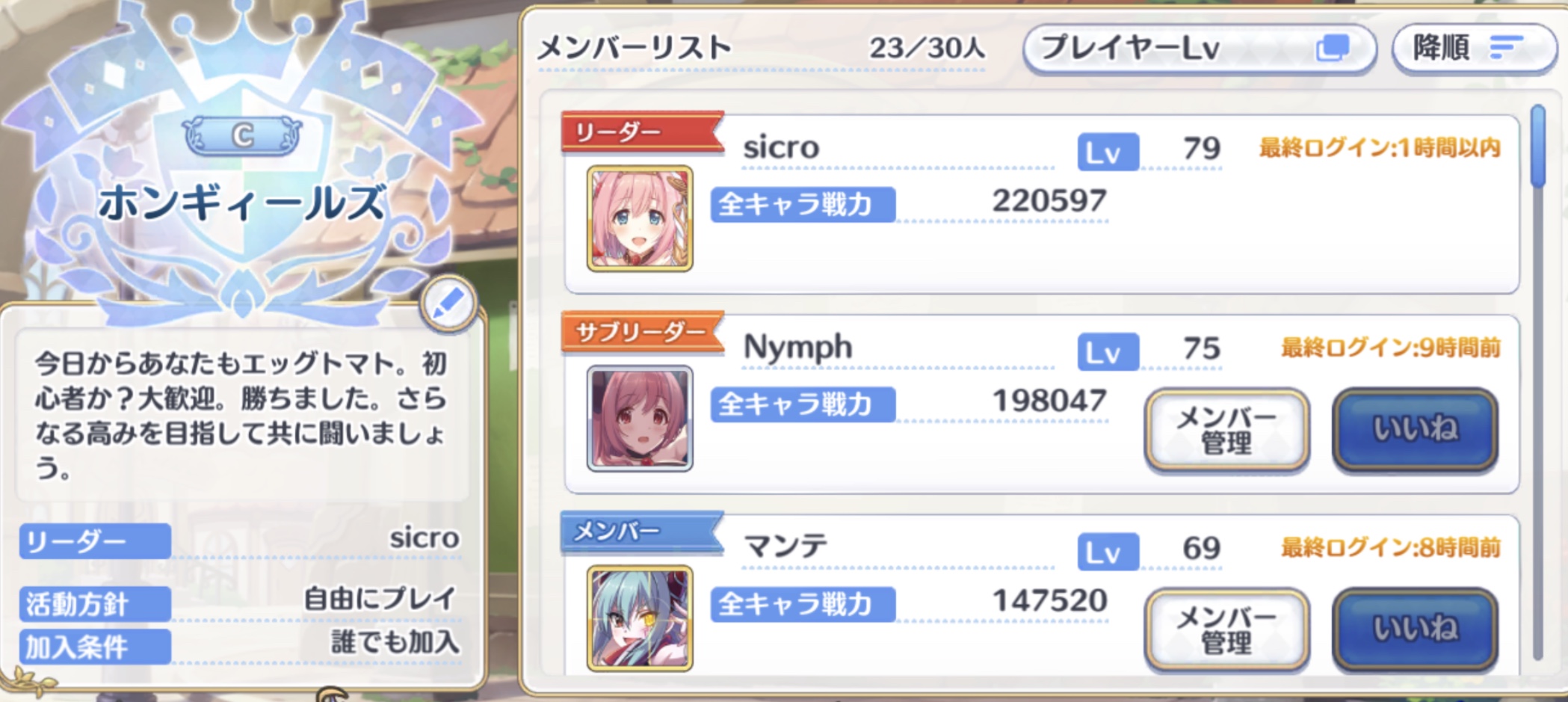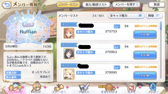 【加入条件】レベル93以上、総戦力30万以上クラバト毎日3回殴ること!