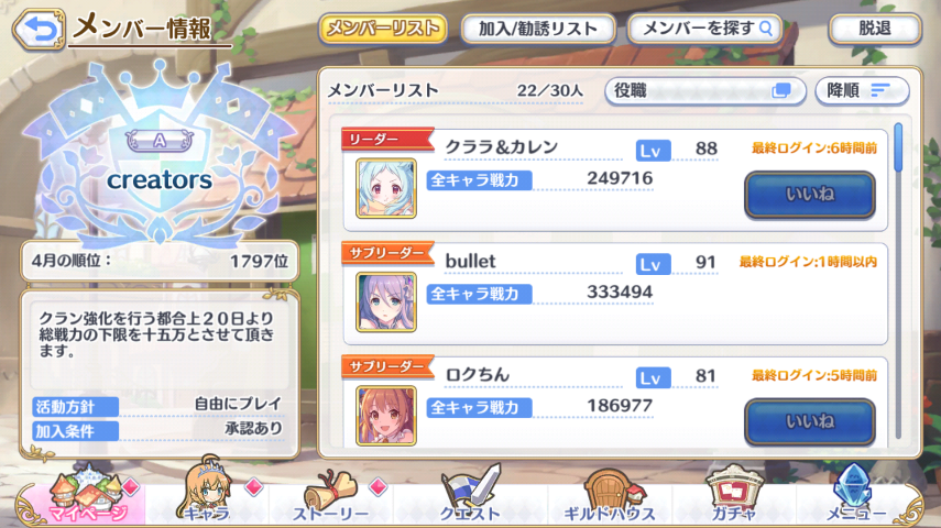 【クランの方針】クランバトルはある程度ガッツリ、普段まったり