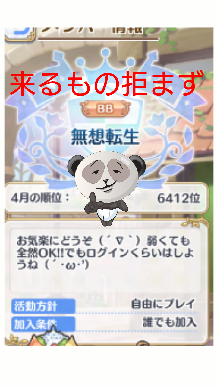 まだまだ少人数なので幅広くメンバーを募集しております。是非参加をお願いします。IN率高めな方・クランバトルに参加出来る方・初心者大歓迎
