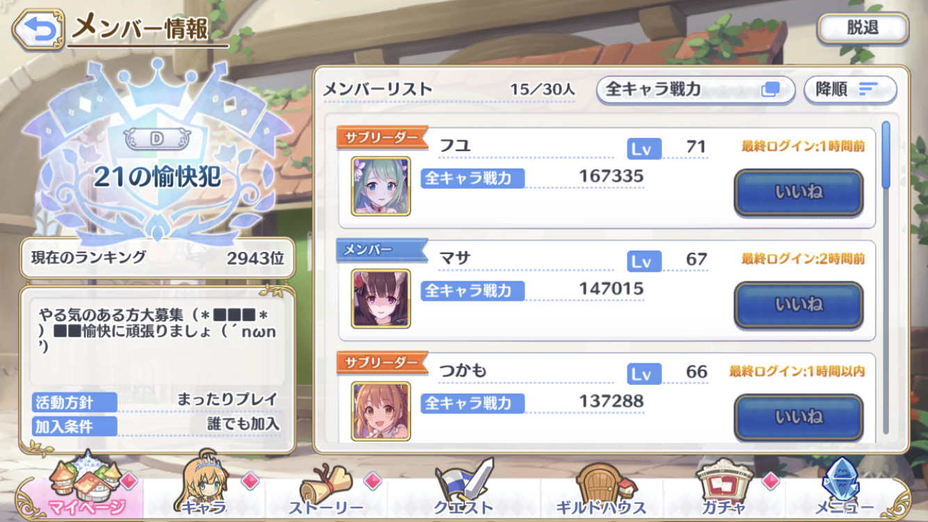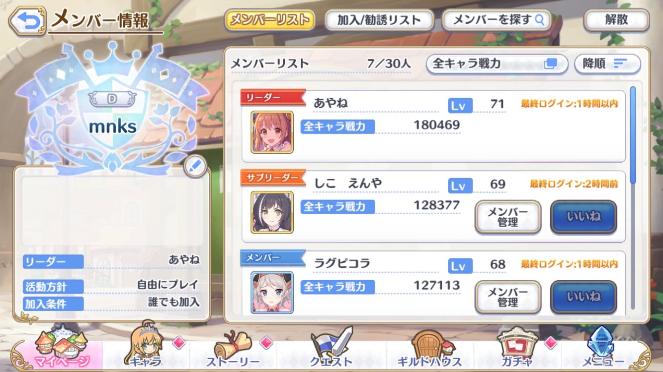 荒らしやクランバトル不参加、ログインのみは除名対象とさせていただきます