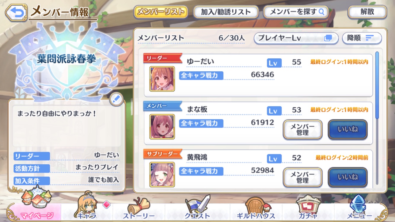 スマホアプリ「プリンセスコネクト!Re:Dive」(プリコネR)のクラン募集掲示板です。