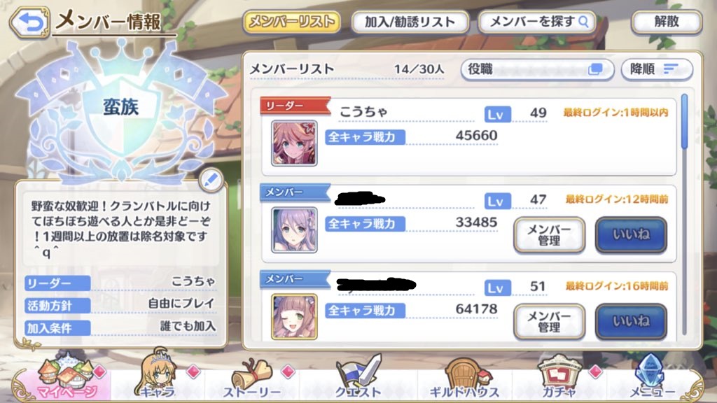 素材リクエストやクランバトルなどには積極的に参加お願いします!
