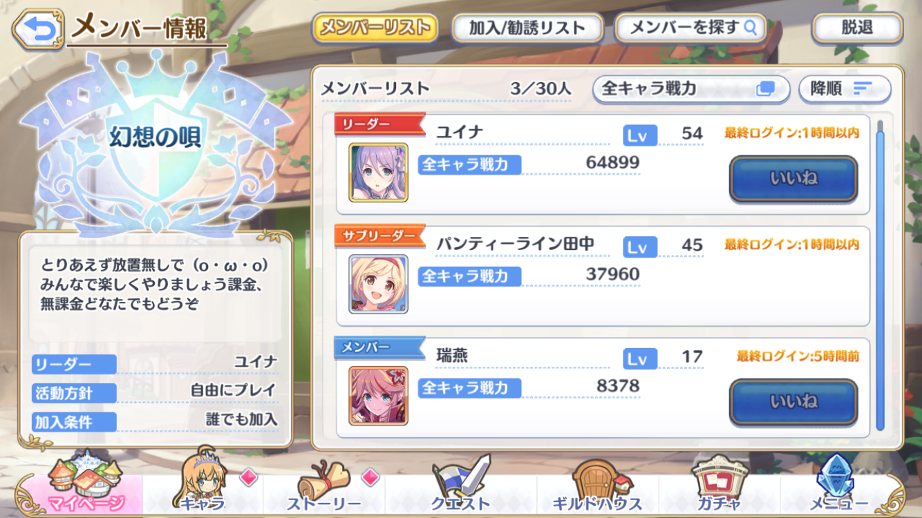 スマホアプリ「プリンセスコネクト!Re:Dive」(プリコネR)のクラン募集掲示板です。