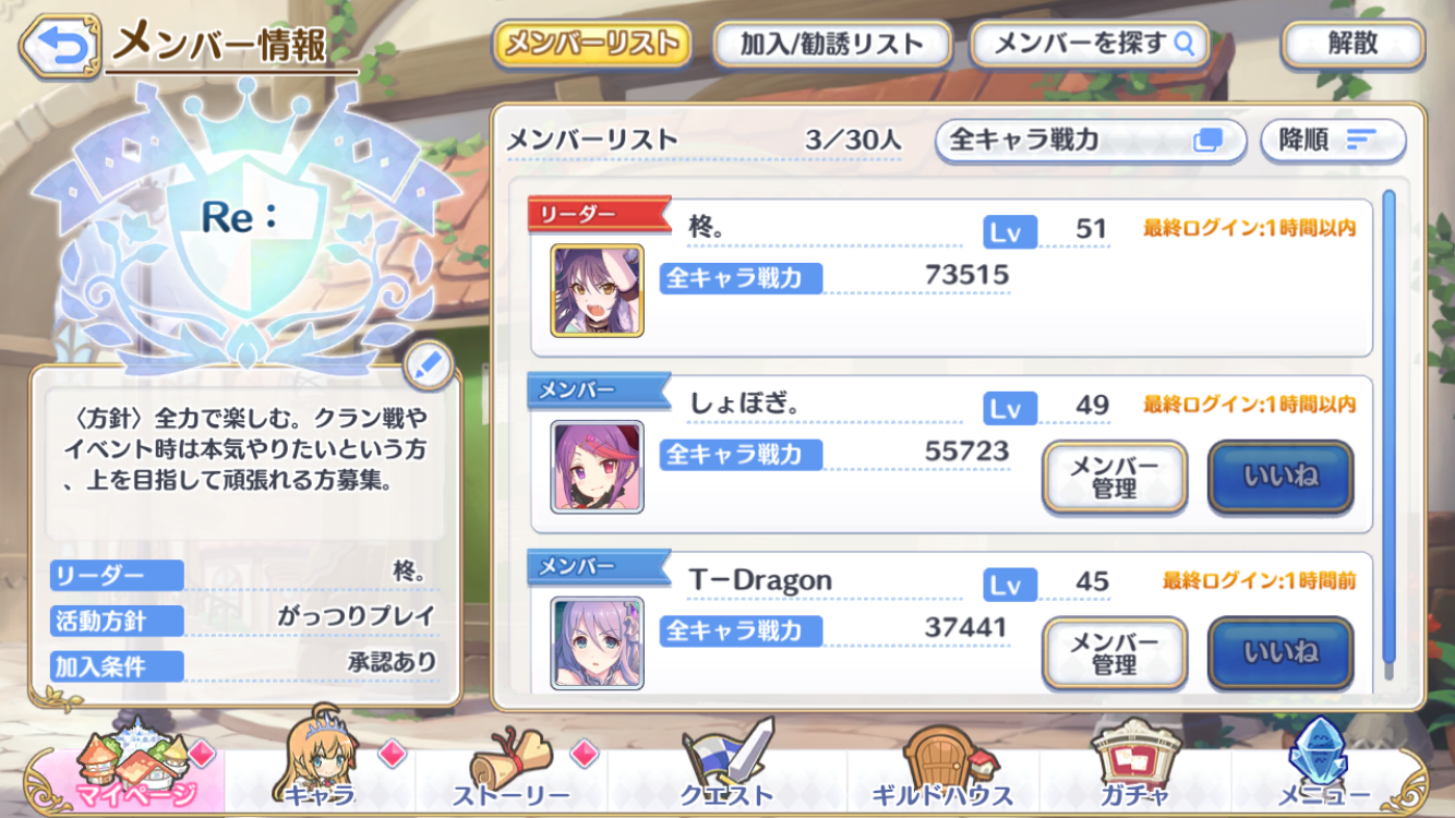 スマホアプリ「プリンセスコネクト!Re:Dive」(プリコネR)のクラン募集掲示板です。