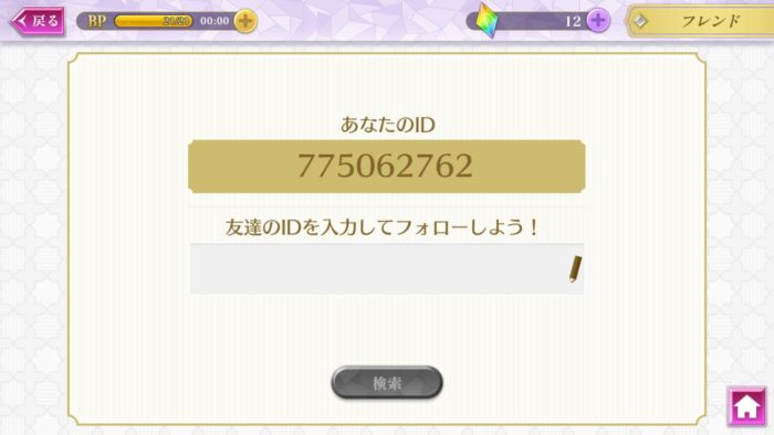 自分のIDは「設定」⇒「フレンド管理」⇒「ユーザー検索」から確認できます。