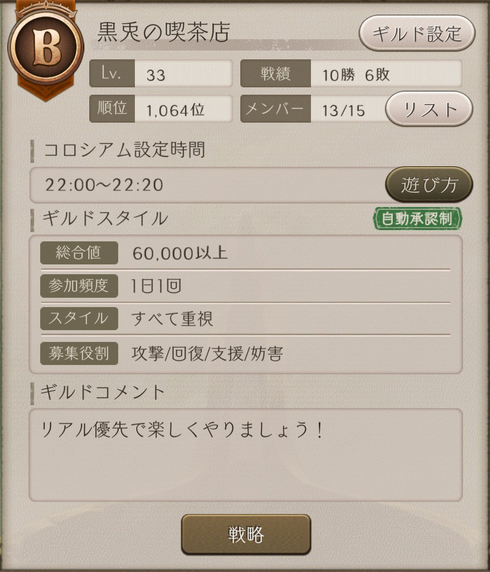 以下のようなフォーマットでコメント欄からギルドメンバーを募集しましょう!
