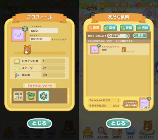 すみすみのフレンドは、ゲームを遊ぶのに必要なクローバーを送りあったり、次のエリアに進むための橋を作るのを手伝ってもらったり、ゲームを遊ぶうえで重要な役割になっています。アクティブなフレンドを作ってお互いに助け合いながらゲームを楽しみましょう!
