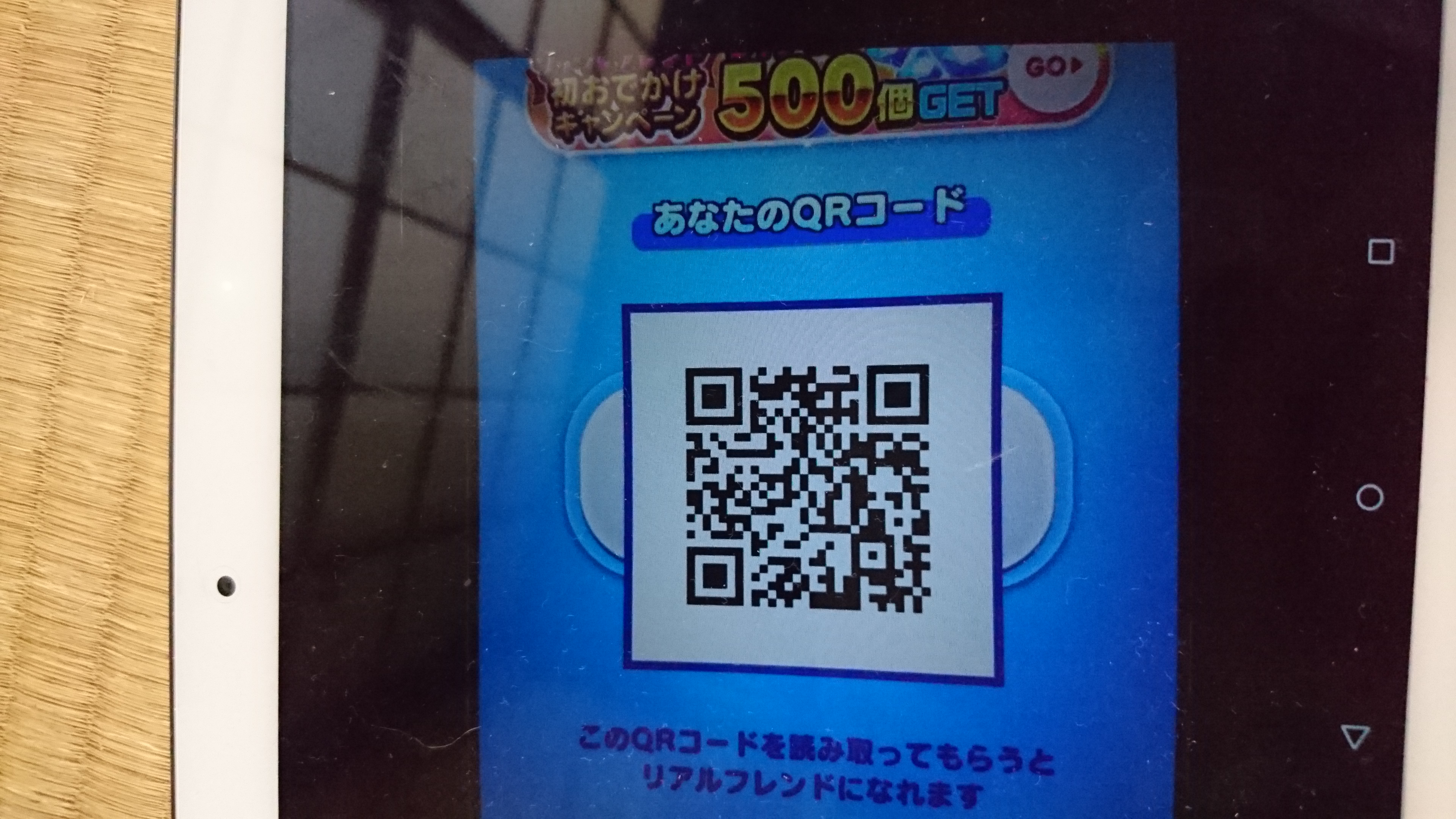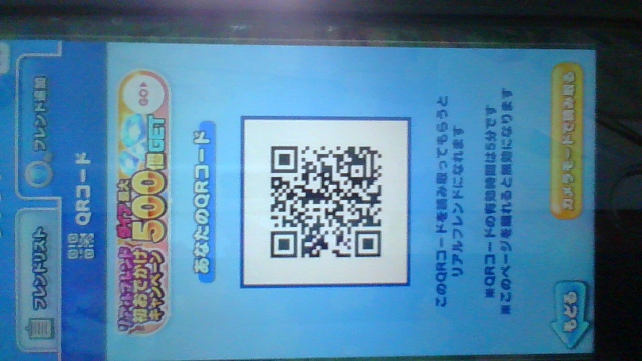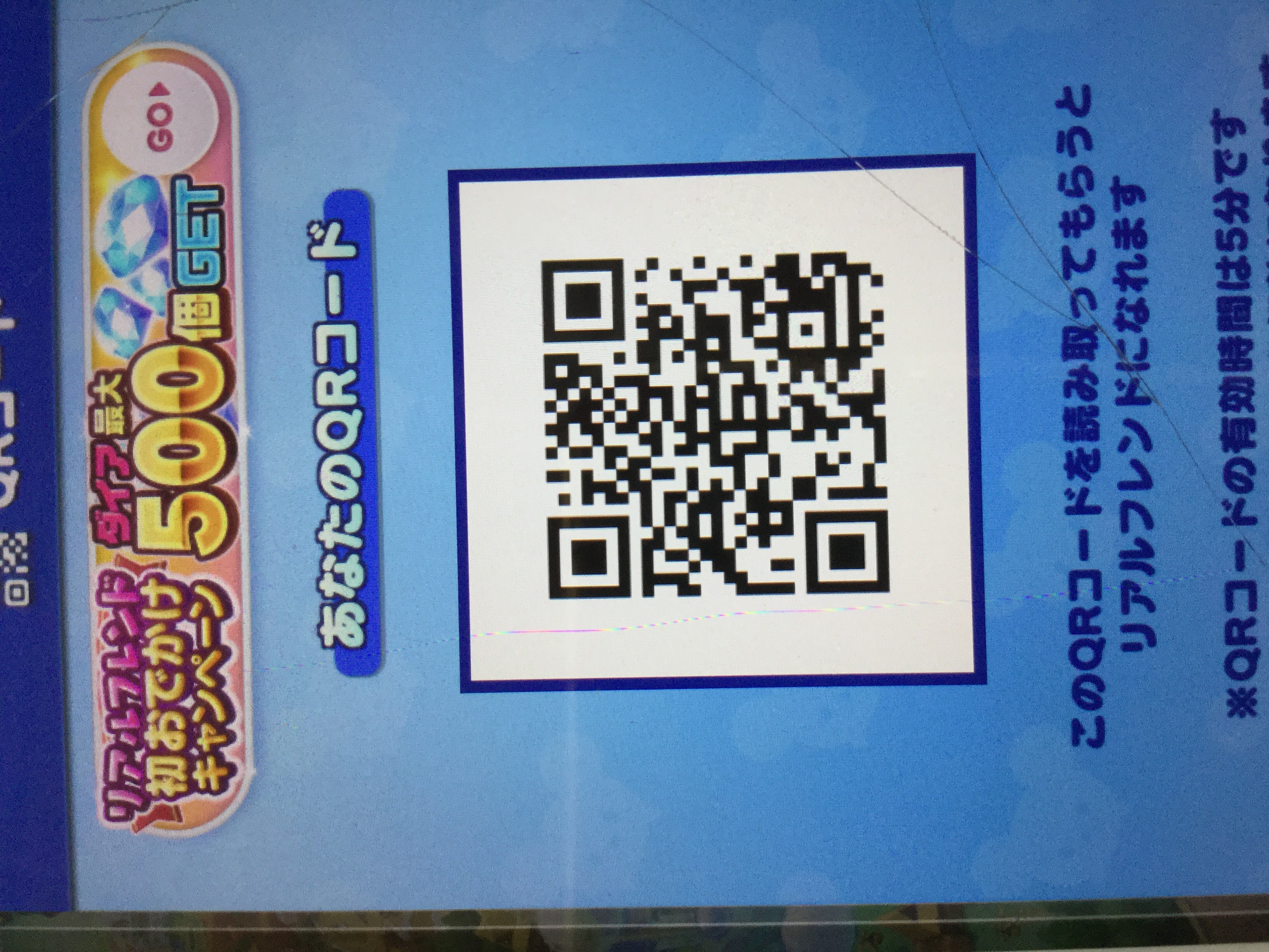 フレンド ⇒ QRコードでリアルフレンド追加 ⇒ 自分のQRコードを表示 ⇒ QRコードを発行する
