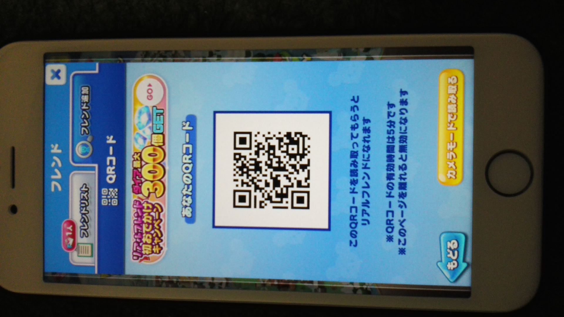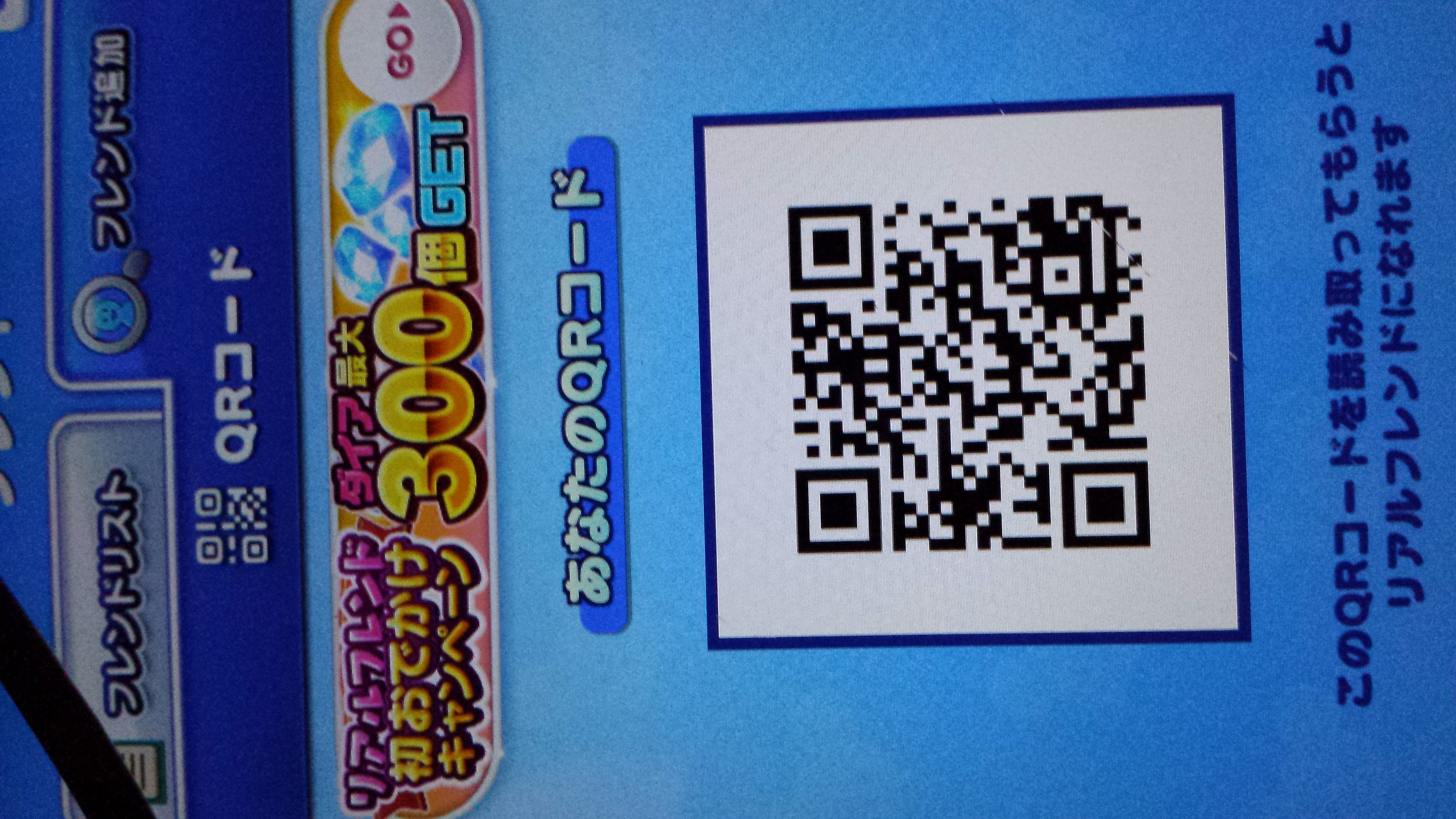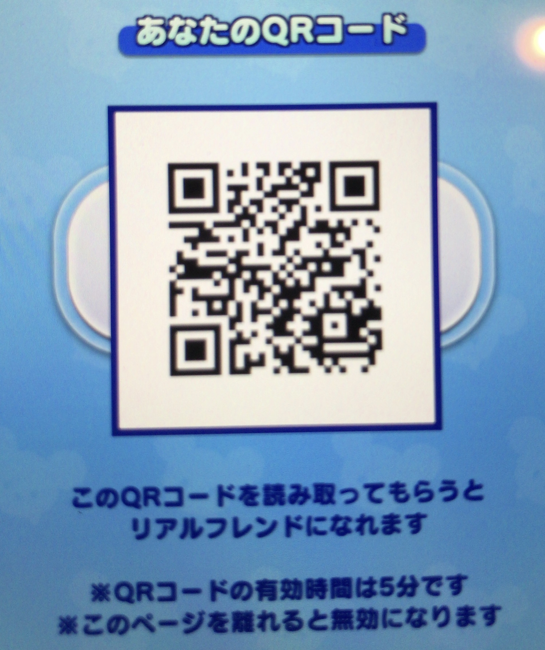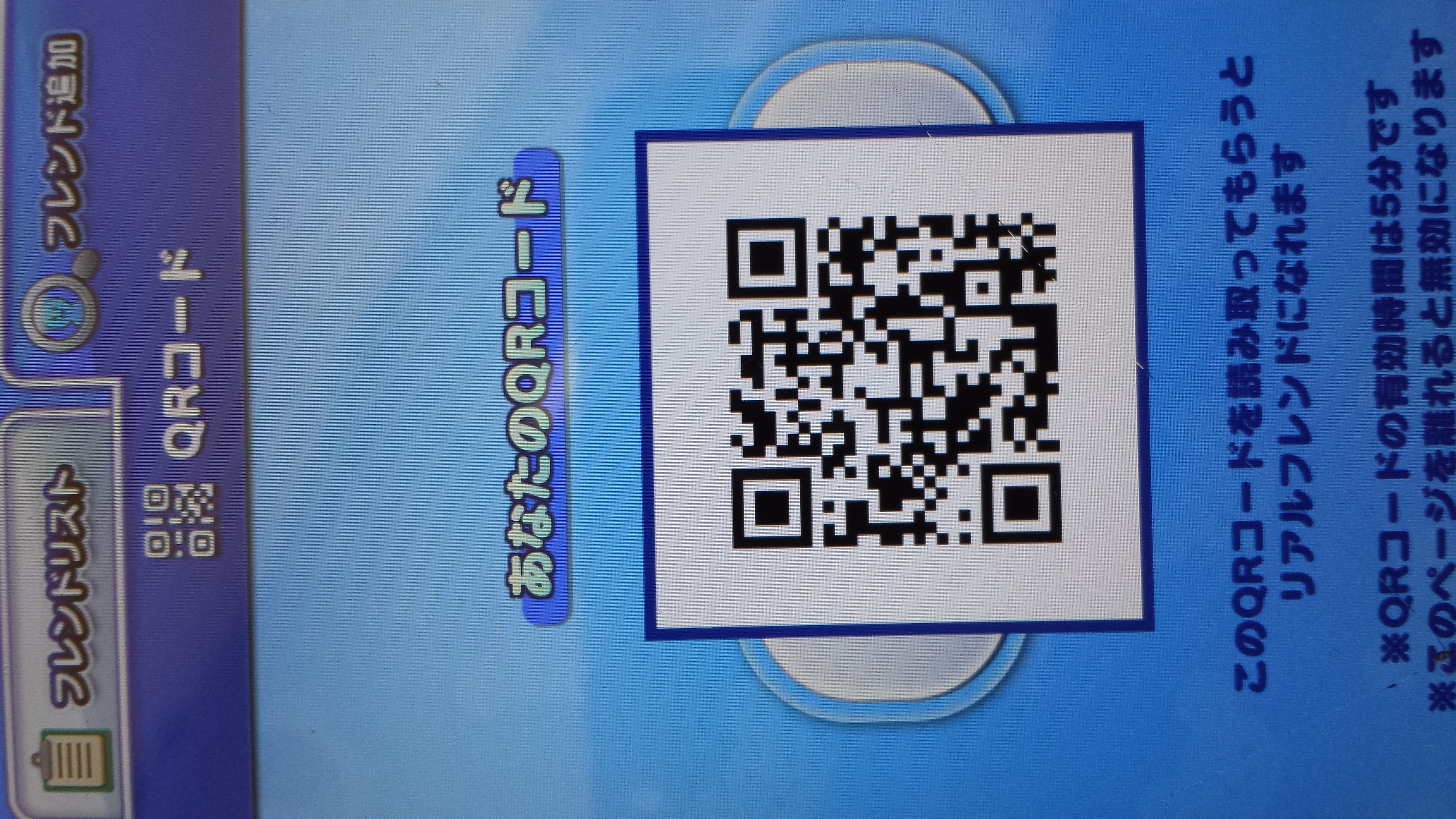 フレンド ⇒ QRコードでリアルフレンド追加 ⇒ 自分のQRコードを表示 ⇒ QRコードを発行する