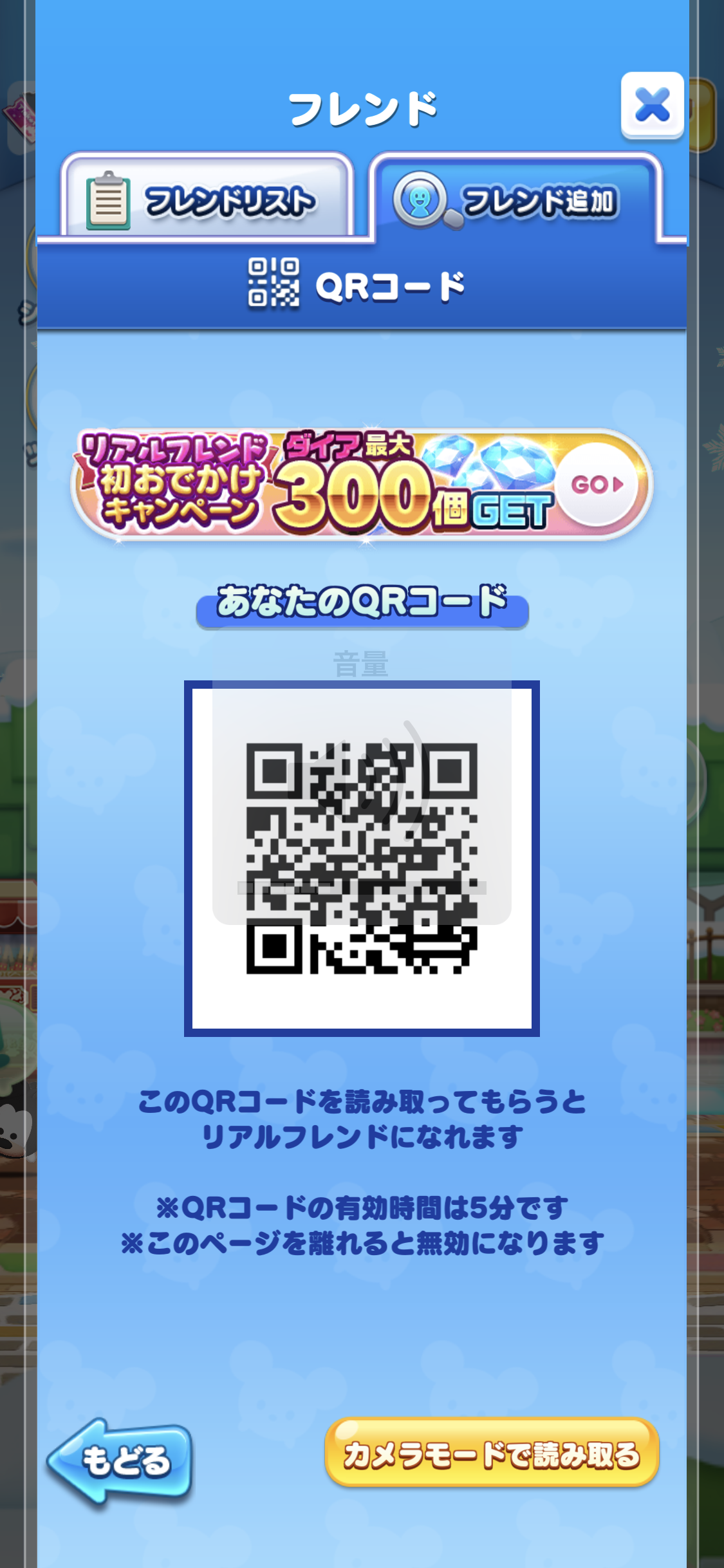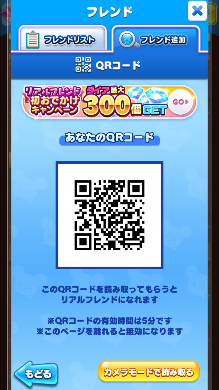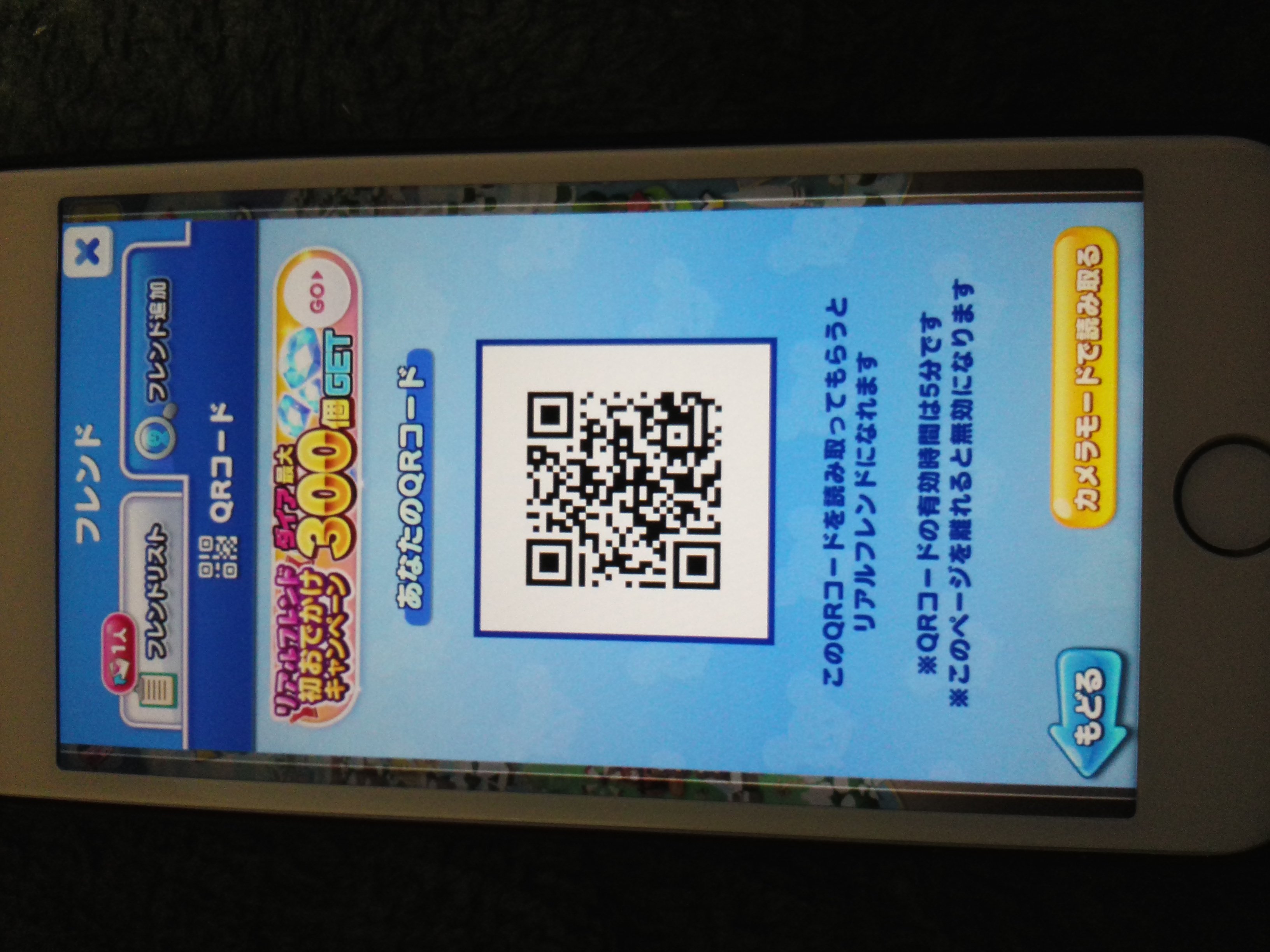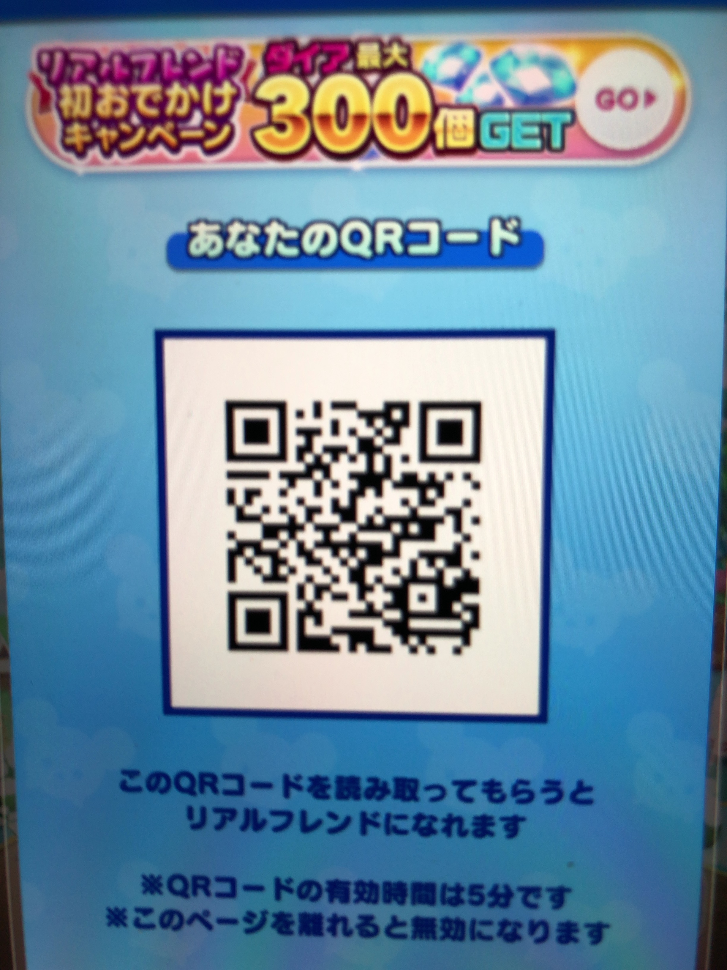 フレンド ⇒ QRコードでリアルフレンド追加 ⇒ 自分のQRコードを表示 ⇒ QRコードを発行する