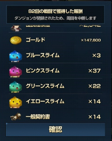 難易度はそれほど高くはありませんが、最高の5段階でも一度のクリアで手に入るスライムは1体のみで、スライム以外が手に入ることもあり、スライムクイーンは見かけたことがないため、過度の期待は禁物です。