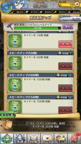 クリスタルオブリユニオン建設や研究などにかかる時間はレベルが上がる毎に飛躍的に増えていきます。 所要時間は時短アイテムを使うことで短縮できますが、より効率的に短縮する方法を紹介します。 無料の時間短縮 残り時間が5分未満になった設備、研究などの…