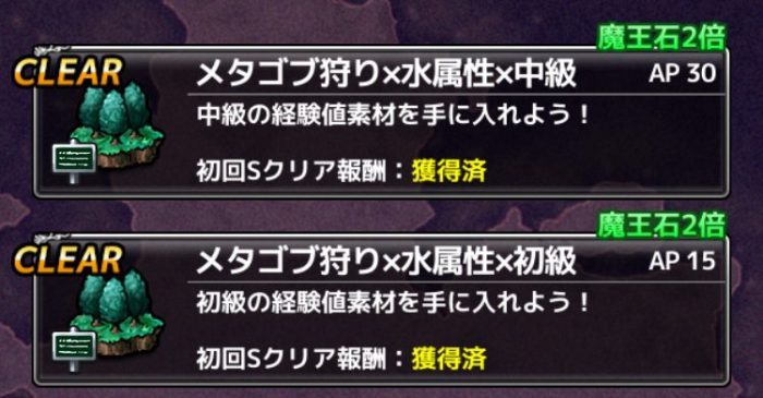 メタゴブ狩りには5/10時点で「初級」と「中級」が存在します。