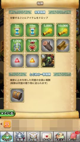▲魔獣討伐で手に入る可能性がある素材は右上の宝箱アイコンから確認できます。