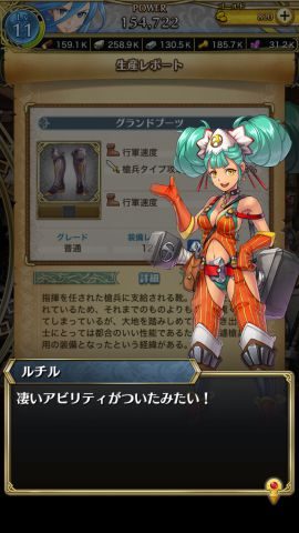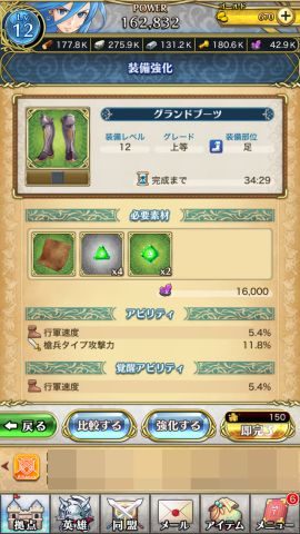 必要な素材を集めることで装備を生産できるのですが、装備レベルに英雄のレベルが足りないと装備できないので注意してください!