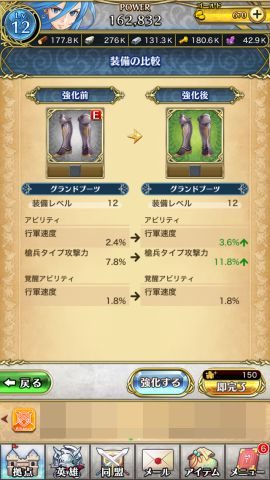 装備にはグレードがあり、装備強化で装備グレードを上げることができます。
