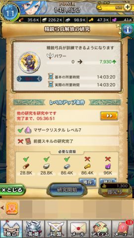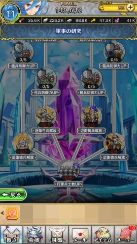 軍事の研究の中ほどに位置しており、最低でもマザークリスタルのレベルが7必要となります。