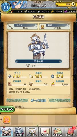 上位の兵種は槍兵、弓兵、騎兵、砲兵それぞれ個別に解放が必要なので、結構道のりは長いです。