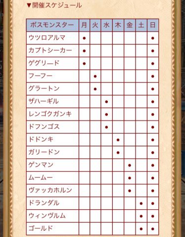 【ドラプロ】曜日クエストのモンスター、ドロップ素材、報酬のまとめ