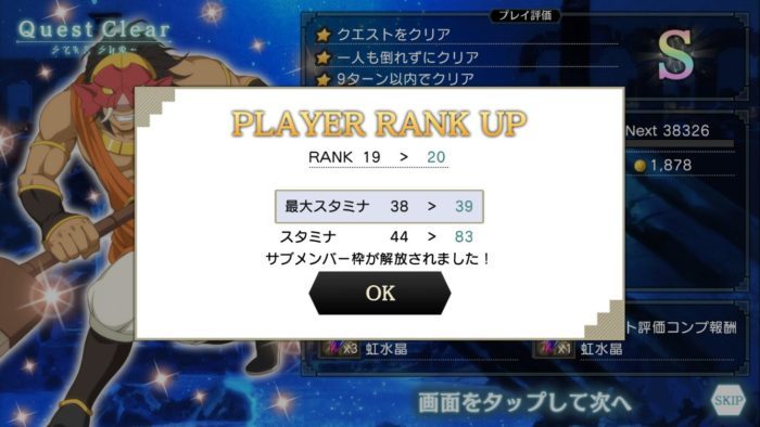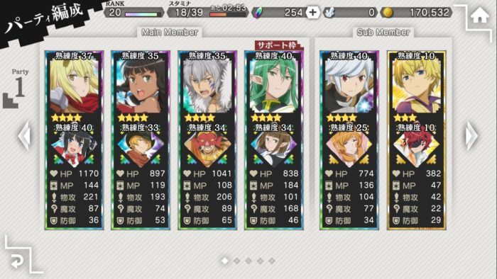 サブメンバーであっても熟練度を上げるための経験値やCPを獲得できるので、キャラクターの育成を本格的に始めるまえにまずはプレイヤーランク20を目指しましょう!