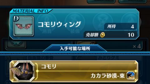 装備強化には素材が必要となりますが、序盤であれば「ガリーナハート」や「コモリウィング」など素材の入手方法が分からないこと多々あります。