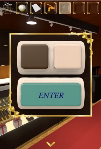 ここで先ほどのポスターの文字の色の順で茶色と白のボタンを押し、ENTERボタンを押します。