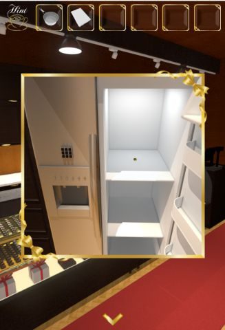 キッチンに移動し、左の青いボタンのついた装置を調べます。