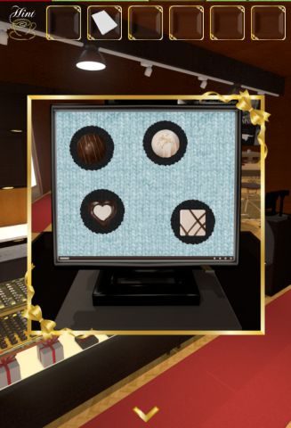 ショーケースの左下のチョコを調べてチョコの並びを確認します。