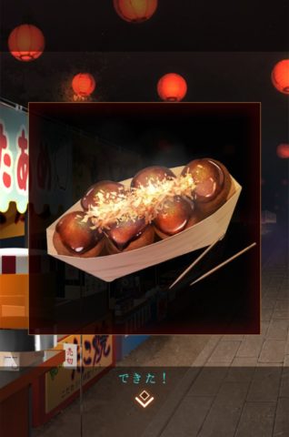 画面中央のスピーカーを修理している人をタップし、たこ焼きが食べたいことを聞きます。