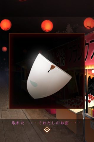 画面左のお面の屋台をタップし、ズームされたお面の目の向きを確認します。