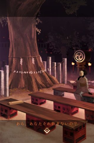 りんご飴の屋台がある画面に移動し、奥の人をタップします。