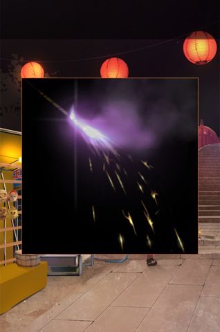 花火の先をタップして拡大し、色の順「赤、青、緑、紫、青」を確認します。