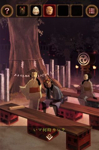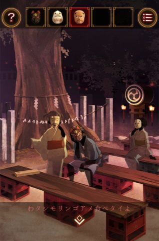 御神木のある画面に移動し、狐のお面の子をタップして会話します。