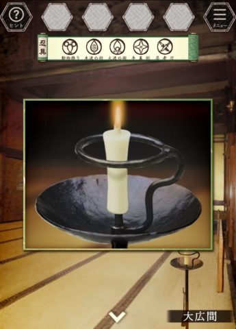 忍具から「火遁の術」をろうそくにドラッグし、火を灯します。