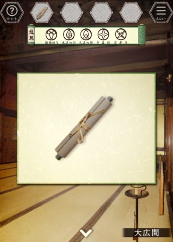 右側の障子を拡大し、中にある赤い巻物をタップします。